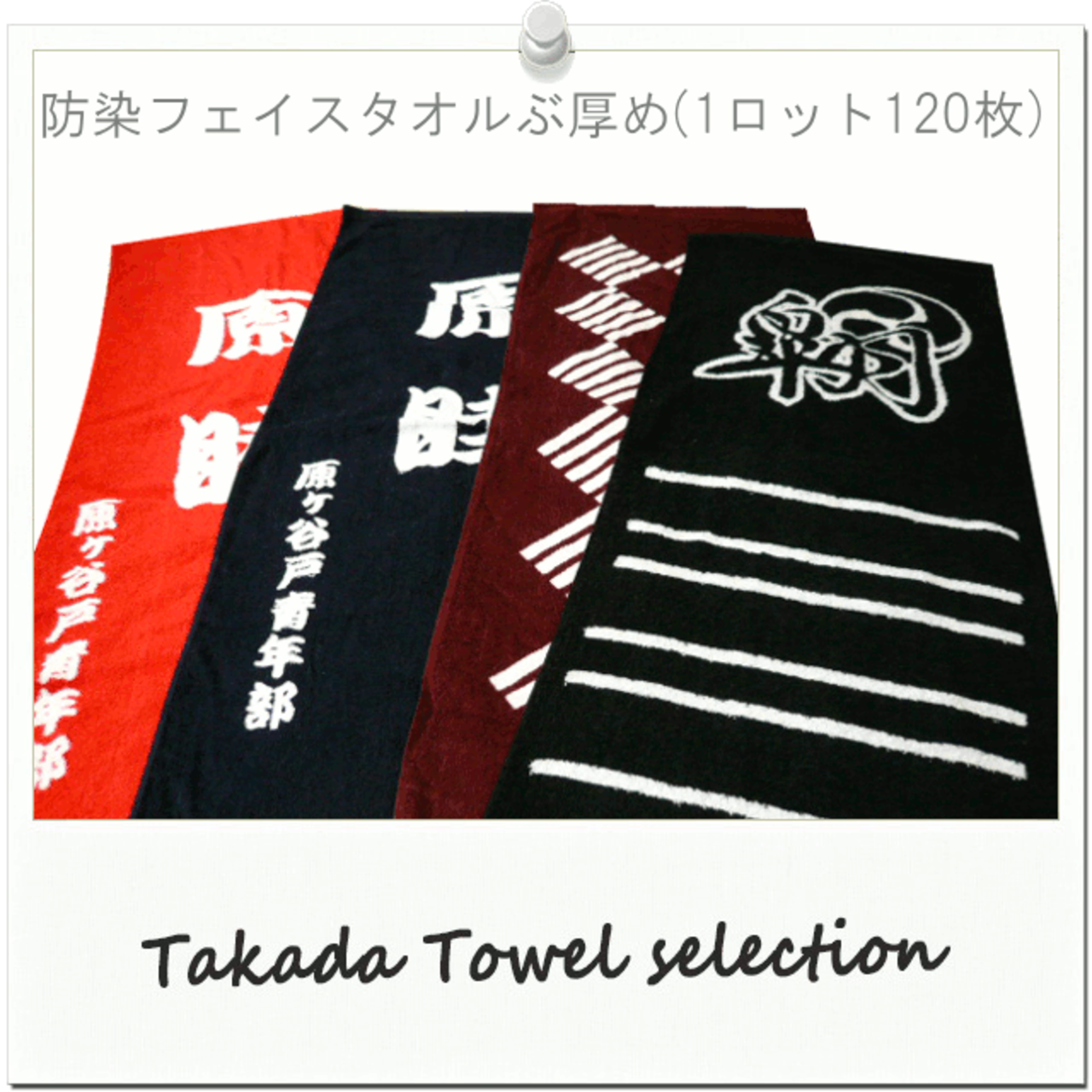 ・1枚ずつ手作業で名入れするこの防染タオルは特性上、機械プリント名入れ等に比べると鮮明度に欠け多少のにじみ、ゆがみが発生いたします。