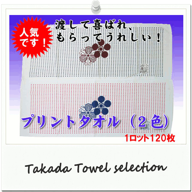 【人気!】渡して喜ばれ、もらってうれしい人気のプリントフェイスタオル(2色)(1ロット120枚)TK417