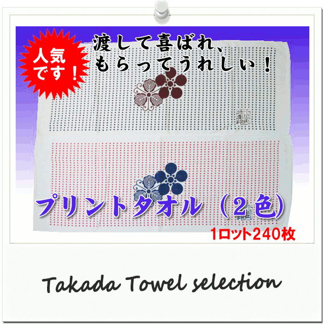 【人気!】渡して喜ばれ、もらってうれしい人気のプリントタオル(2色)(1ロット240枚)TK418