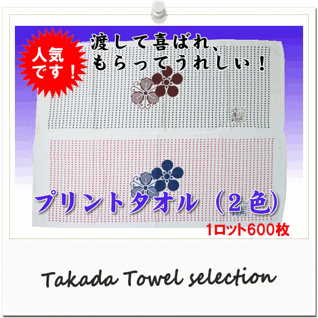 【人気!】渡して喜ばれ、もらってうれしい人気のプリントタオル(2色)(1ロット600枚)TK421