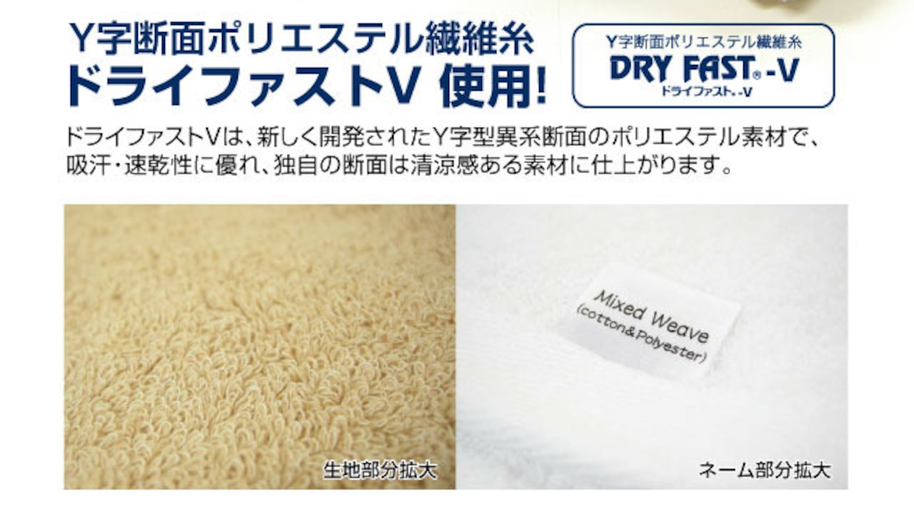 ドライファスト-Vは新しく開発されたY字異形断面のポリエステルスバン素材で、