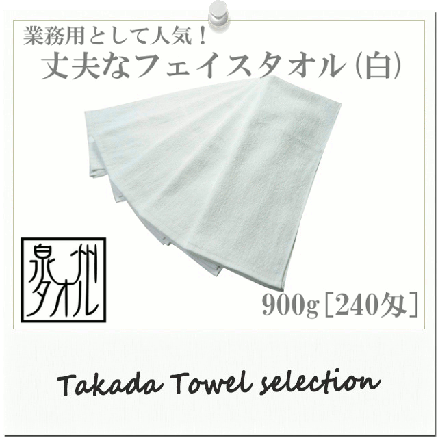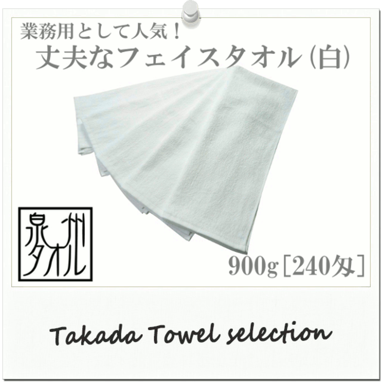 【日本製泉州タオル】業務用でも家庭用でも使える♪丈夫な白フェイスタオル(900g[240匁]) TK295