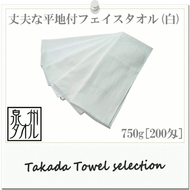 【日本製泉州タオル】業務用でも家庭用でも使える♪平地付フェイスタオル・白(750g[200匁]) TK297