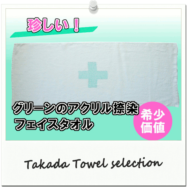 【送料無料】珍しいグリーンのアクリル捺染フェイスタオル(1ロット600枚) TK323