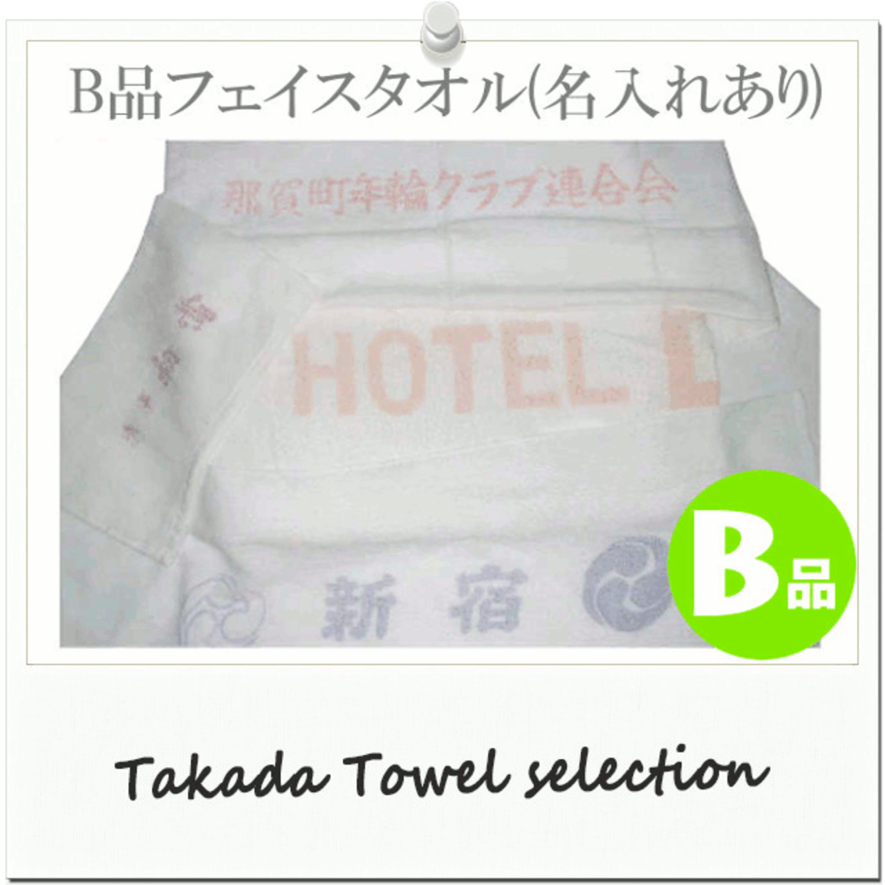 捺染、印刷、プリント、刺繍等の別注名入れフェイスタオル(白)のB品。