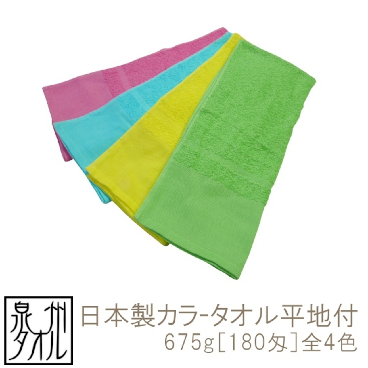 【ネット限定】泉州タオル カラーフェイスタオル平地付全4色 675g[180匁]約34cm×83cm 綿100% 日本製 国産 後晒し 木綿付 吸水性 速乾 使いやすい 薄手 安い お得 コスパ ブルー ピンク グリーン イエロー 青色 桃色 緑色 黄色 名入れ 粗品 記念 挨拶TK490