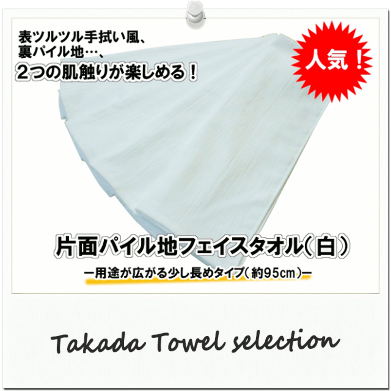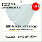 【ネット限定】表ツルツル!裏パイル地!片毛フェイスタオル白・少し長めタイプ(約95cm)(1050g[280匁])TK344-a