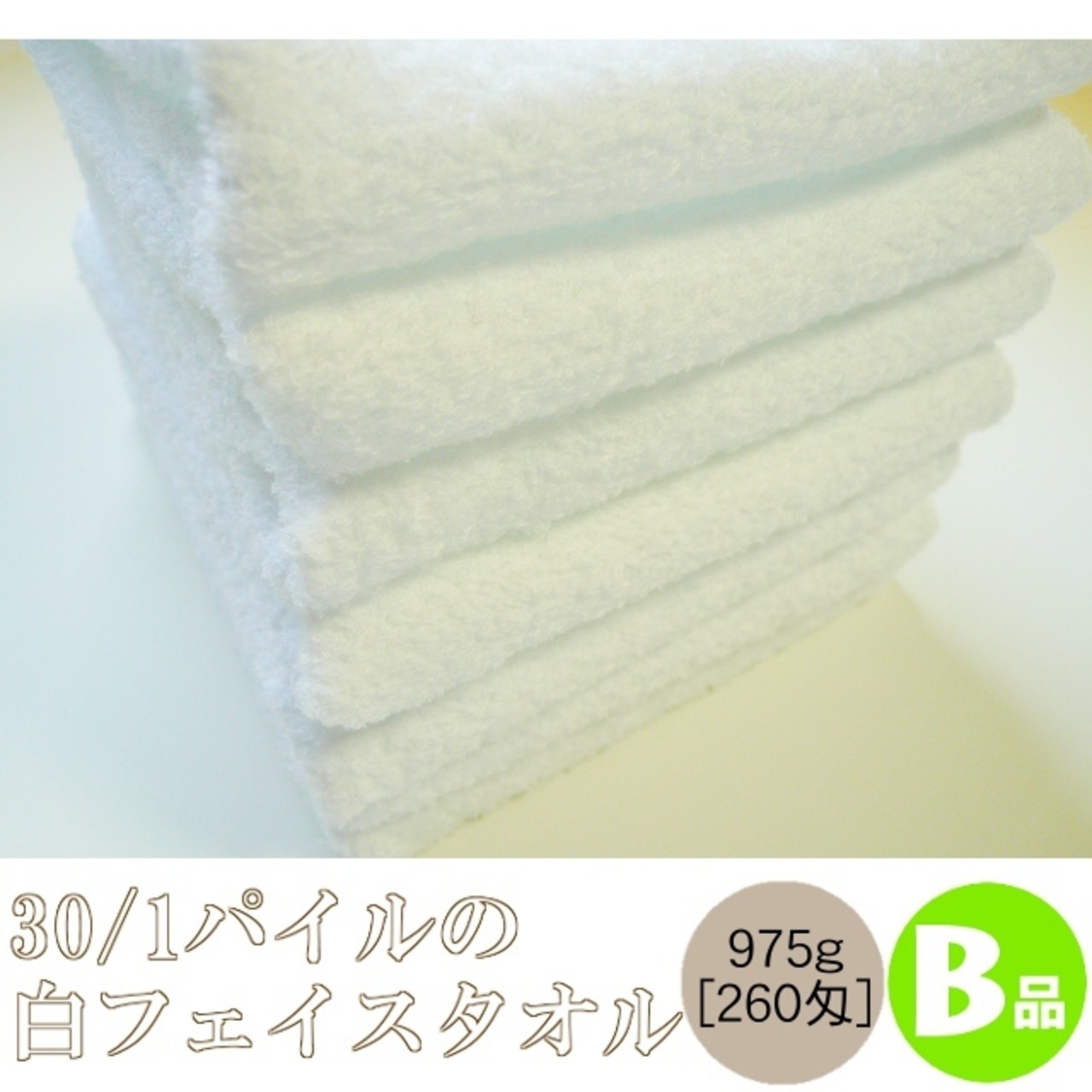 【訳ありB品】 30/1パイルの白タオル( しっかり厚手900g[260匁] ) TK394-260-b