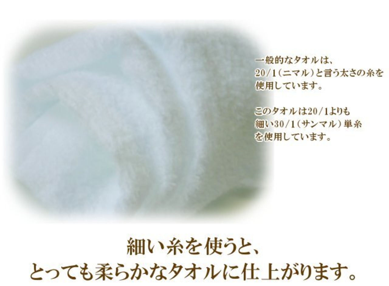 一般的なタオルに使う糸よりも細い30/1(サンマル)単糸を使って織り上げた、