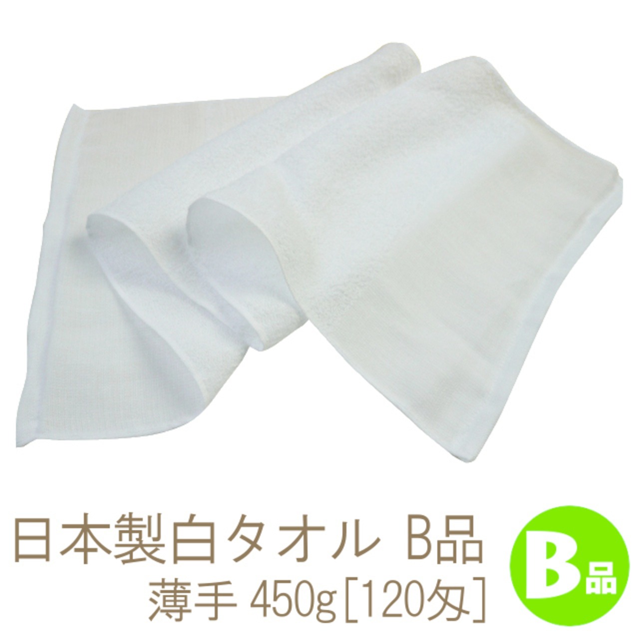 【訳ありB品】薄くて軽い日本製白タオル(450g[120匁]) B品 TK206-b