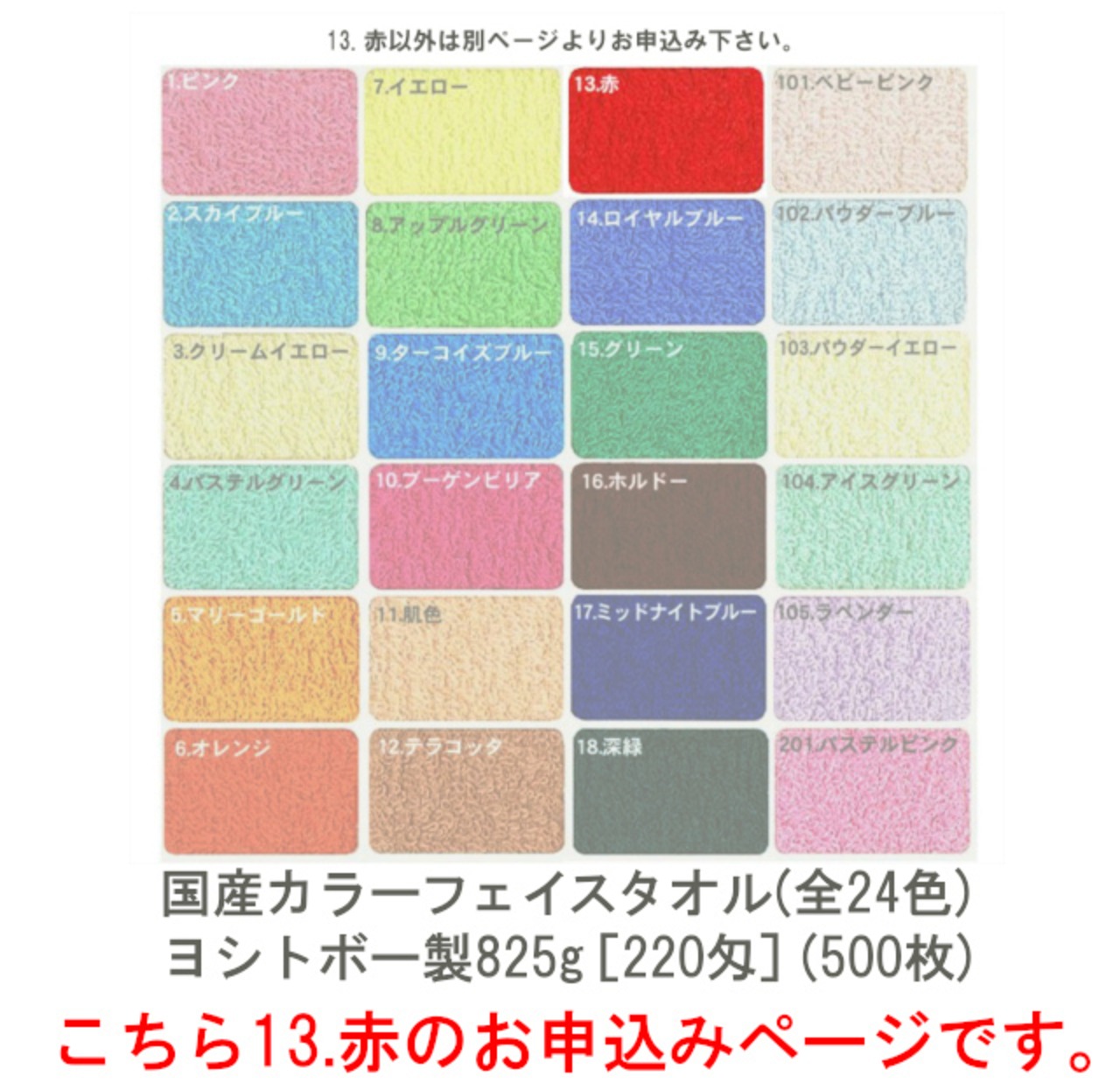 【業販】ヨシトボー製825g[220匁]カラータオル(赤)(1c/s=50デカ[500枚]) TK215-2